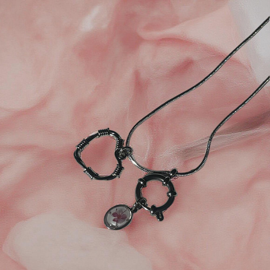 Collana ANIMA E KORE in base bianca e fiore rosa .